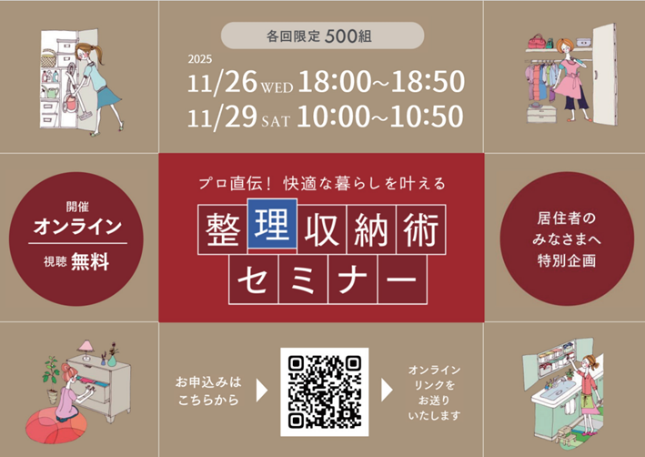 【無料オンラインセミナー】プロが教える!快適な暮らしを叶える 整理収納術セミナー|11/26(水)・11/29(土)開催