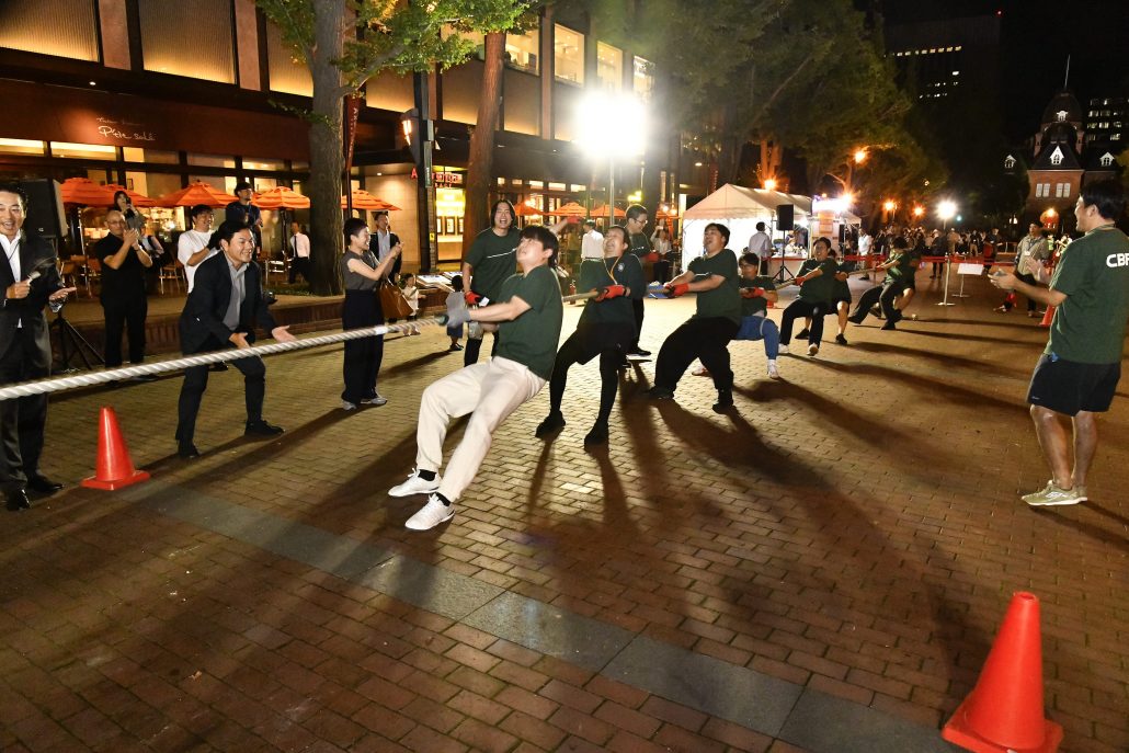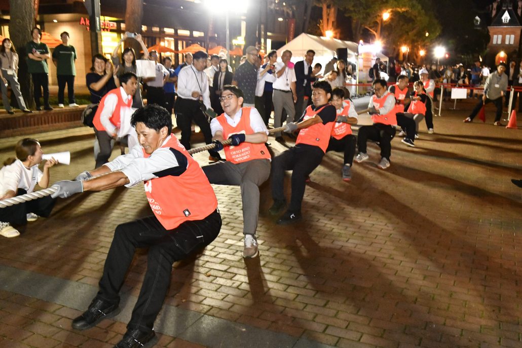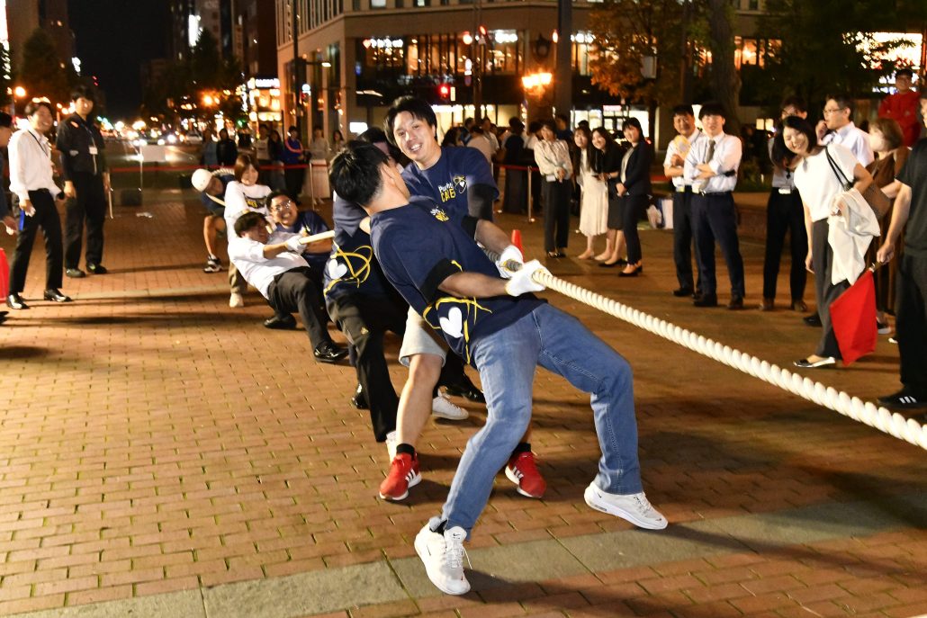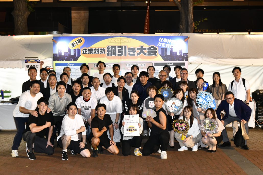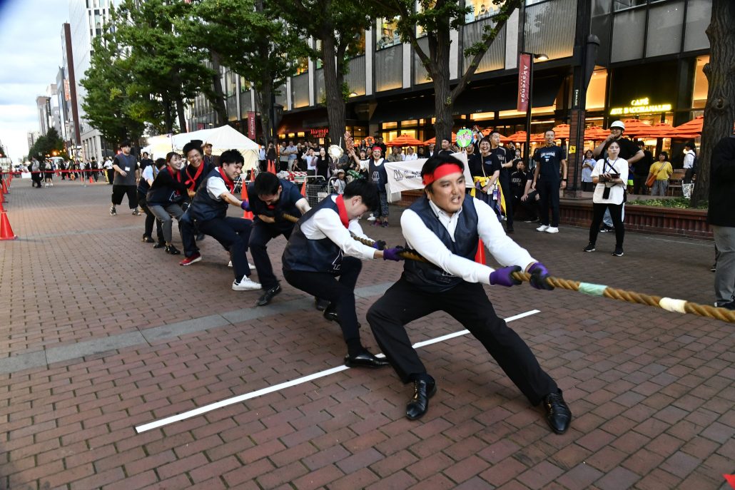 2025年9月11日(木)、札幌市の赤れんがプラザ(通称:アカプラ)にて、「第1回アカプラ企業対抗綱引き大会」が開催されました。主催は札幌駅前通地区活性化委員会。札幌駅前通のにぎわい創出と企業間交流を目的に、地域の企業チームが一堂に会し、力と笑顔が交錯する熱戦が繰り広げられました。 当日は、綱引きというシンプルながらも白熱する競技を通じて、参加企業のチームワークや地域のつながりが深まり、会場は終始活気に包まれていました。 本ページでは、当日の大会結果とともに、綱引きに挑む真剣な表情や、勝利を喜ぶ笑顔など、イベントの様子を写真でご紹介します。