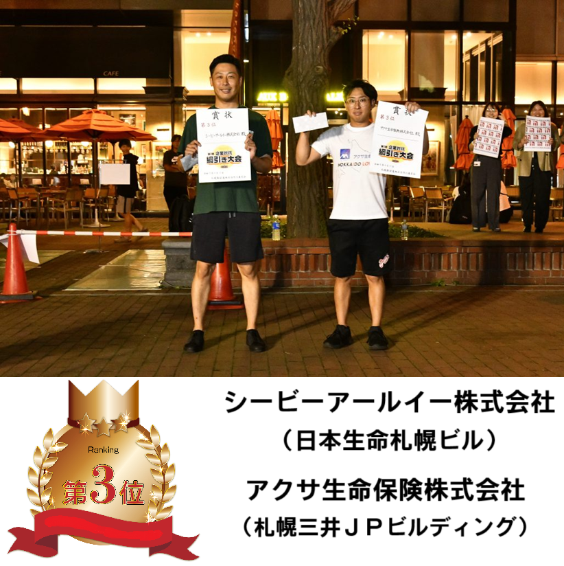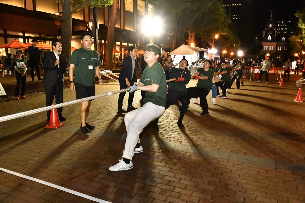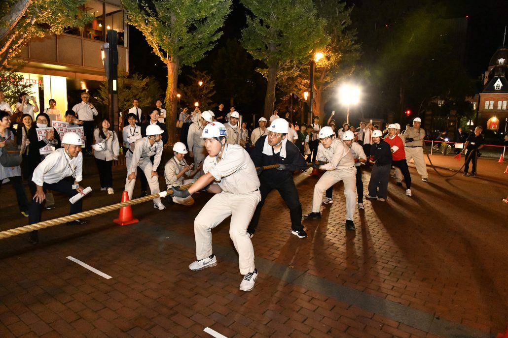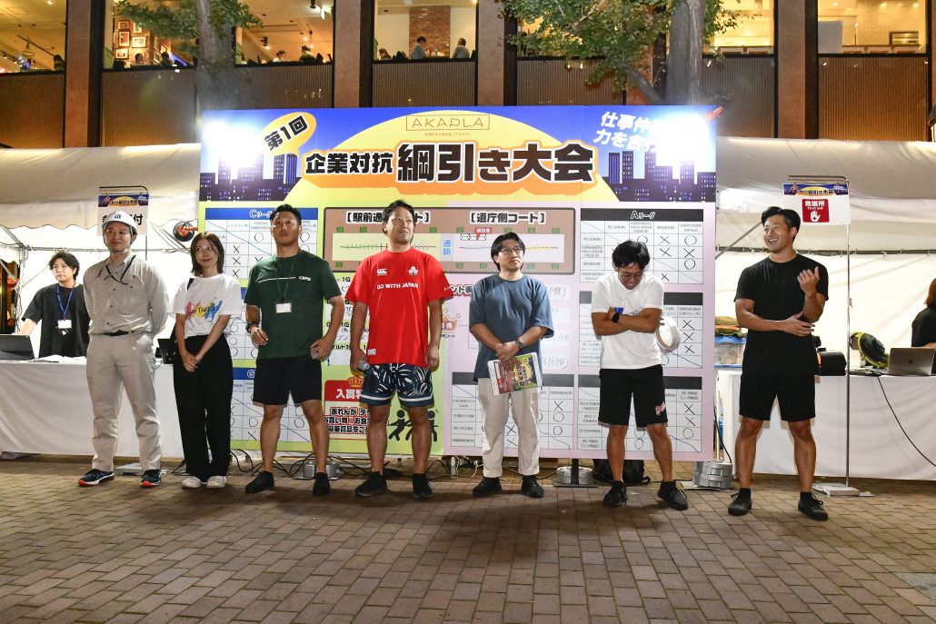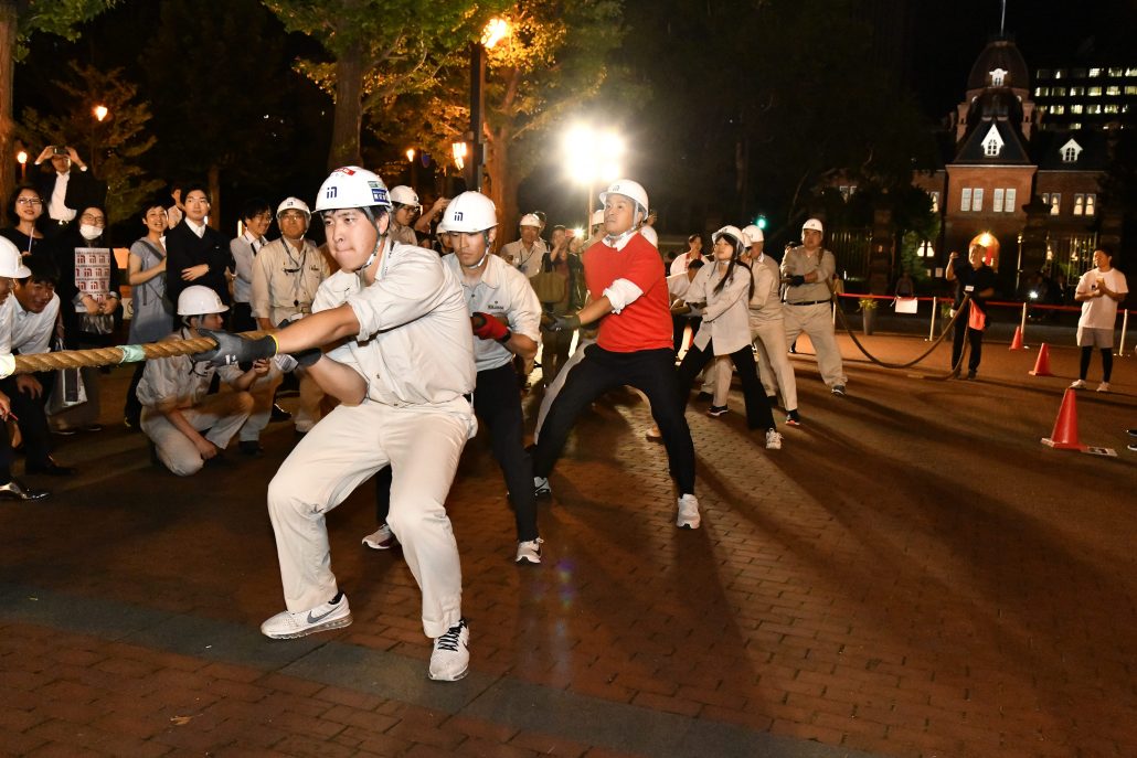 2025年9月11日(木)、札幌市の赤れんがプラザ(通称:アカプラ)にて、「第1回アカプラ企業対抗綱引き大会」が開催されました。主催は札幌駅前通地区活性化委員会。札幌駅前通のにぎわい創出と企業間交流を目的に、地域の企業チームが一堂に会し、力と笑顔が交錯する熱戦が繰り広げられました。 当日は、綱引きというシンプルながらも白熱する競技を通じて、参加企業のチームワークや地域のつながりが深まり、会場は終始活気に包まれていました。 本ページでは、当日の大会結果とともに、綱引きに挑む真剣な表情や、勝利を喜ぶ笑顔など、イベントの様子を写真でご紹介します。