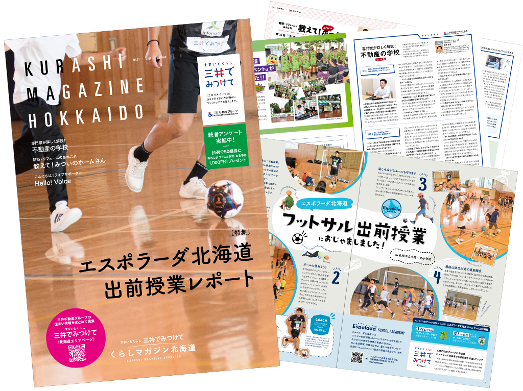 三井不動産グループが発行する季刊誌『三井でみつけて くらしマガジン北海道』は、札幌市内の「三井のリハウス」各センターや、三井ホーム北海道のショールーム・モデルハウス、札幌円山レジデンシャルサロン、商業施設「赤れんが テラス」などで無料配布中です。